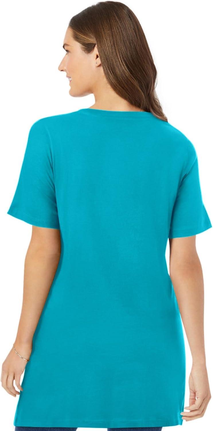 Woman Within Plus Size Perfect Short-Sleeve V-Neck Tunic(Pretty Turquoise)