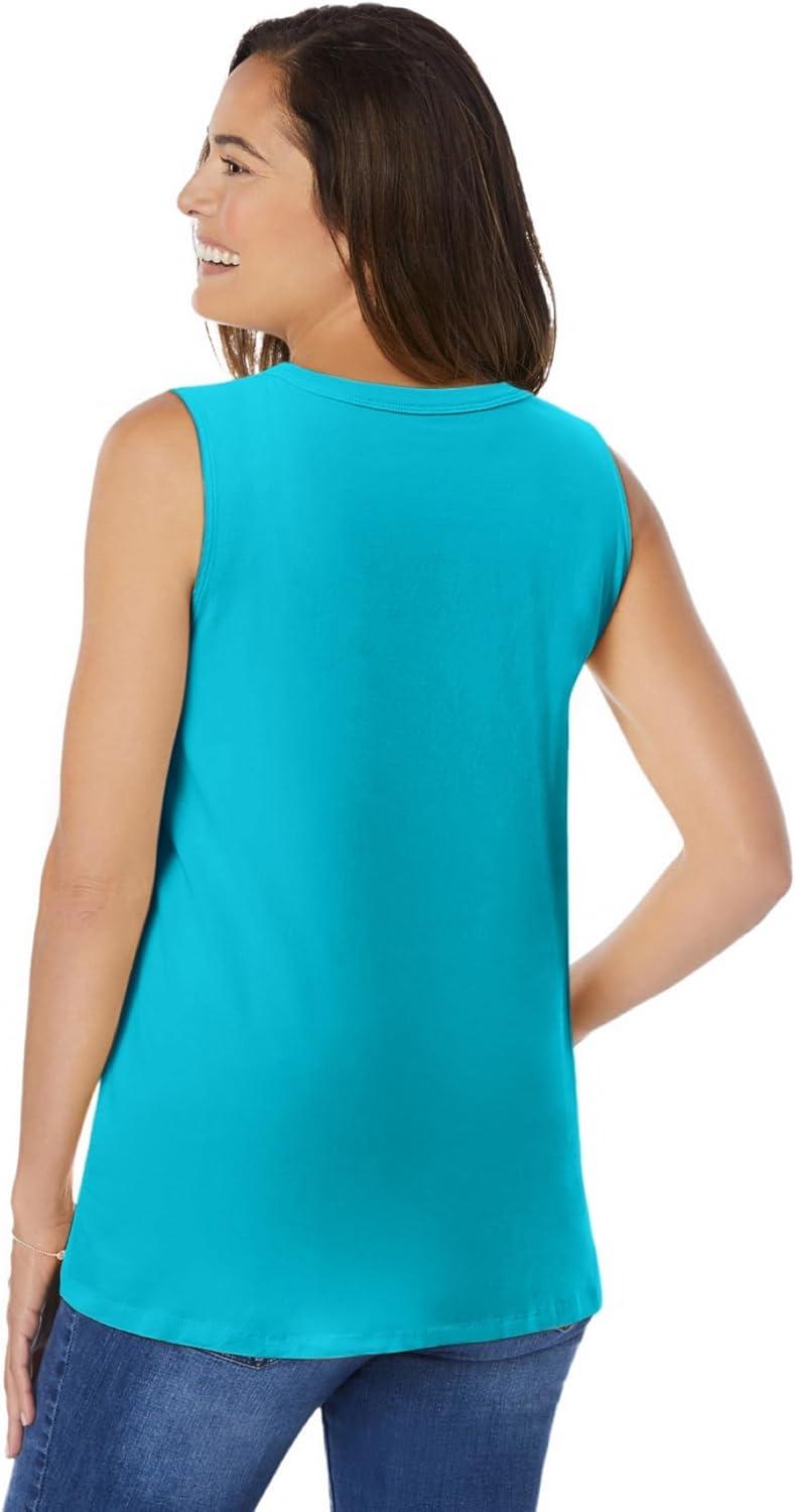 Woman Within Plus Size Perfect Sleeveless Shirred V-Neck Tunic(Pretty Turquoise)