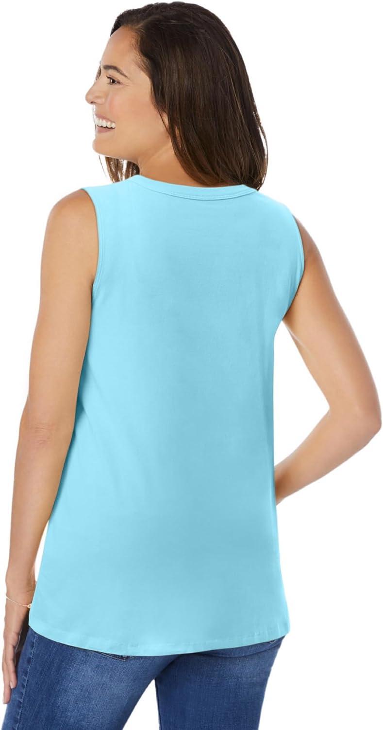 Woman Within Plus Size Perfect Sleeveless Shirred V-Neck Tunic(Seamist Blue)