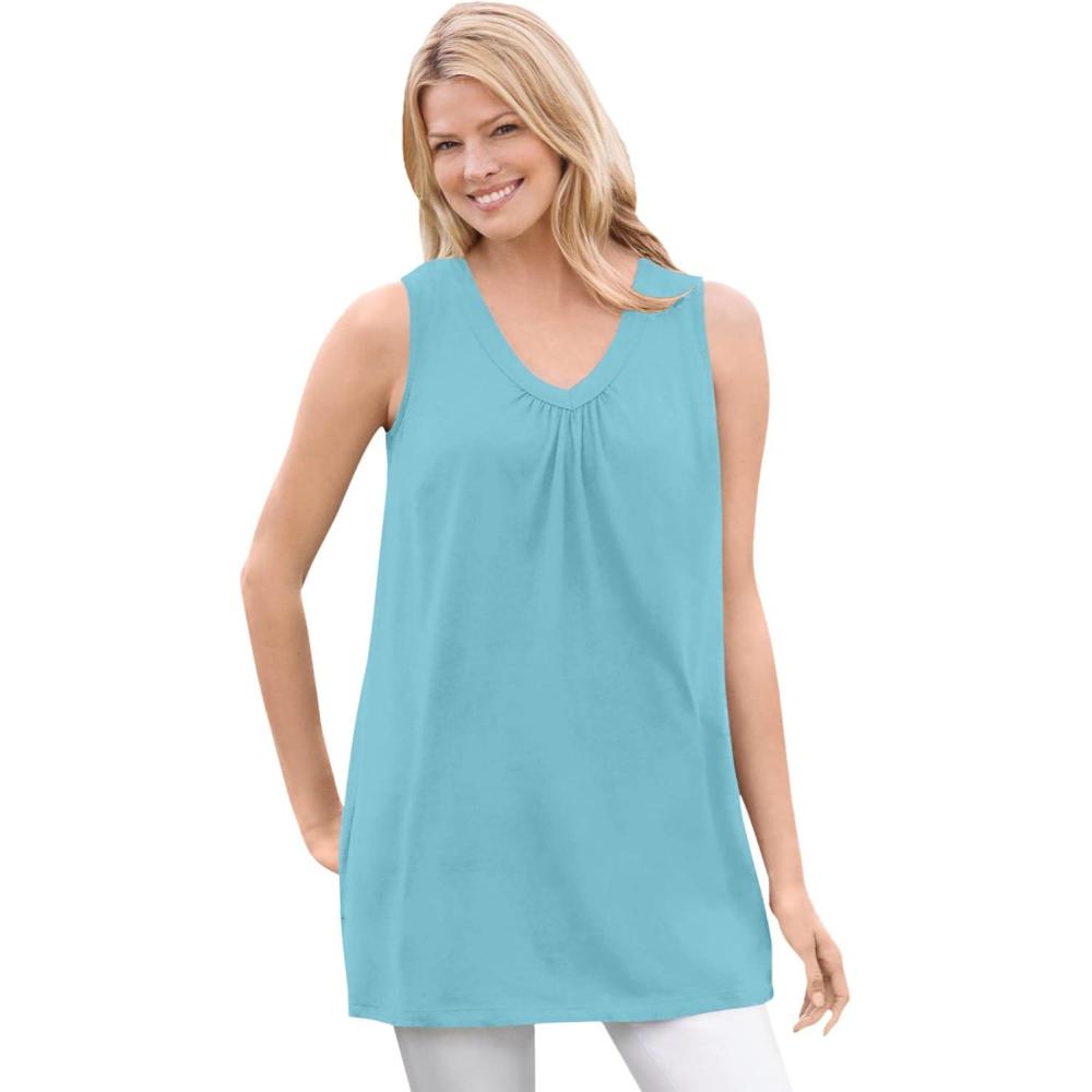 Be the first to review “Woman Within Plus Size Perfect Sleeveless Shirred V-Neck Tunic(Seamist Blue)”