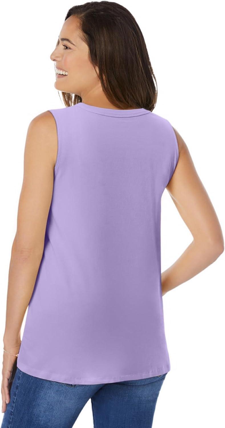 Woman Within Plus Size Perfect Sleeveless Shirred V-Neck Tunic(Soft Iris)