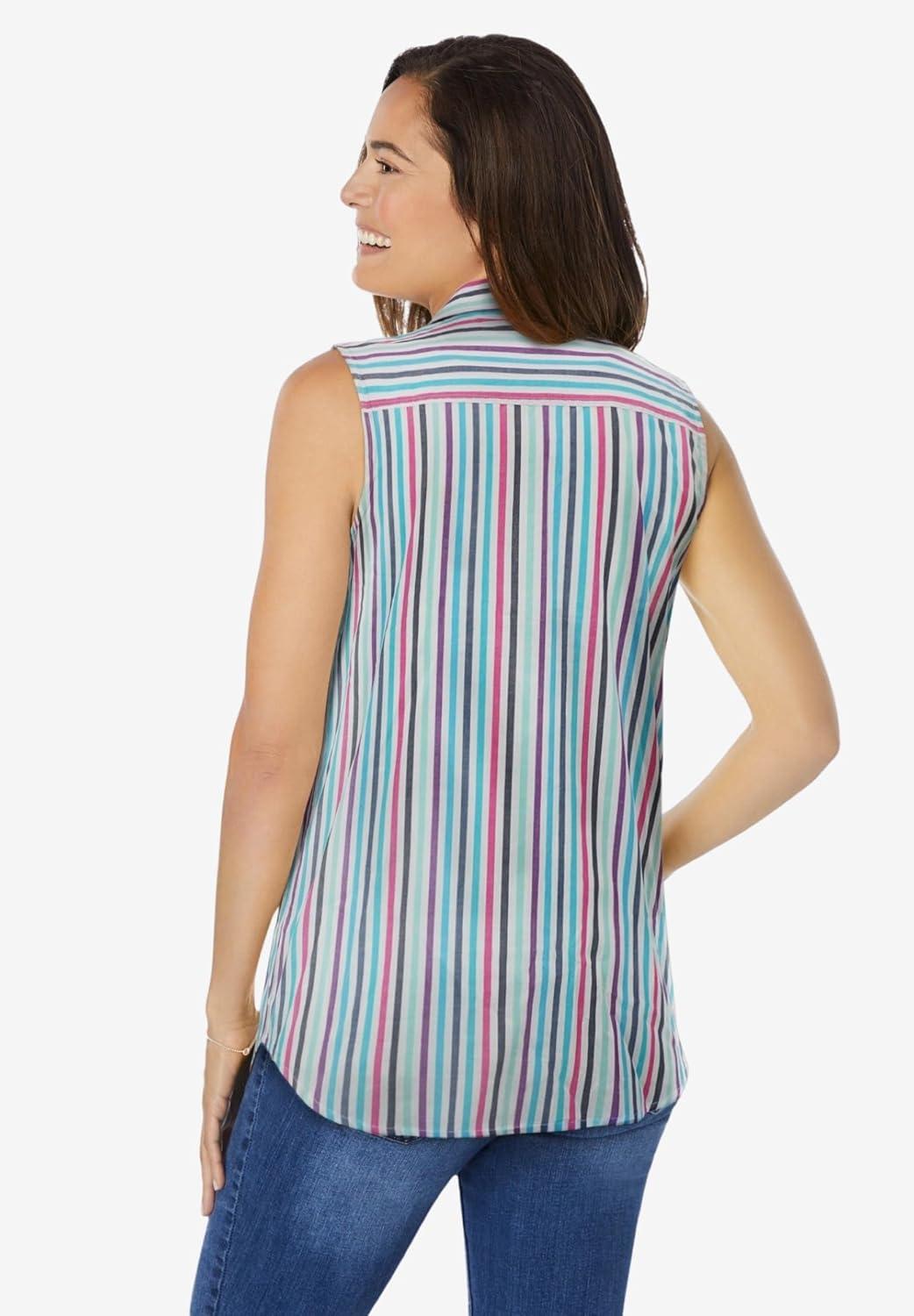Woman Within Plus Size Perfect Sleeveless Shirt(Multi Stripe)