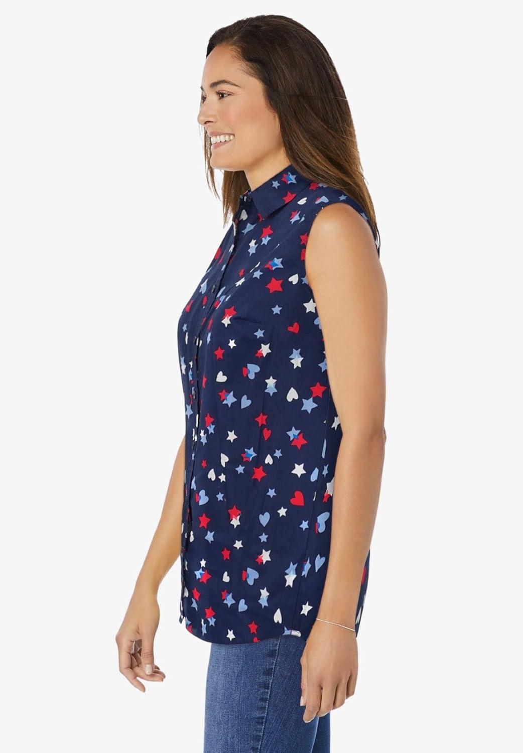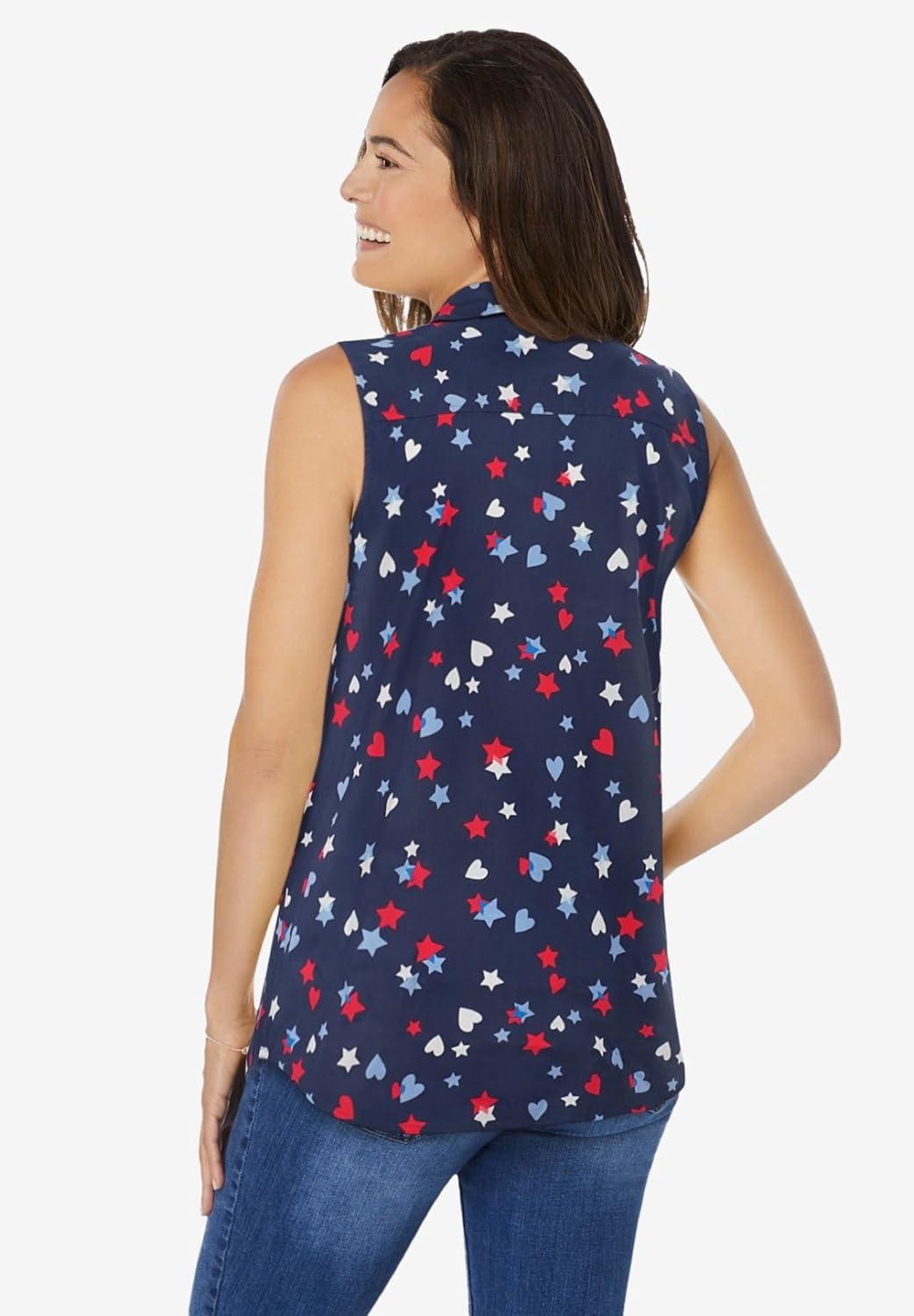 Woman Within Plus Size Perfect Sleeveless Shirt(Navy Hearts and Stars)