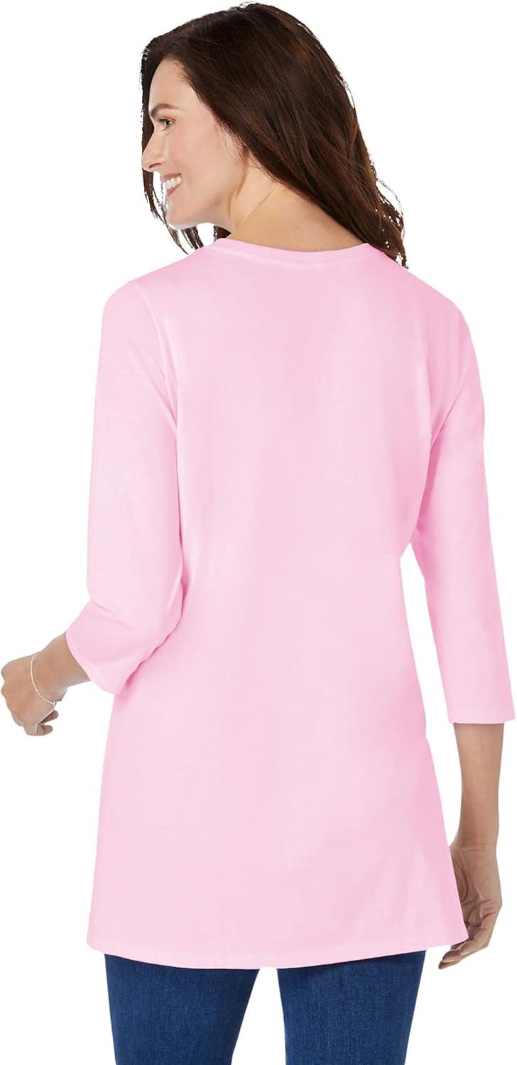 Woman Within Plus Size Perfect Three-Quarter Sleeve Crewneck Tunic(Heather Grey)