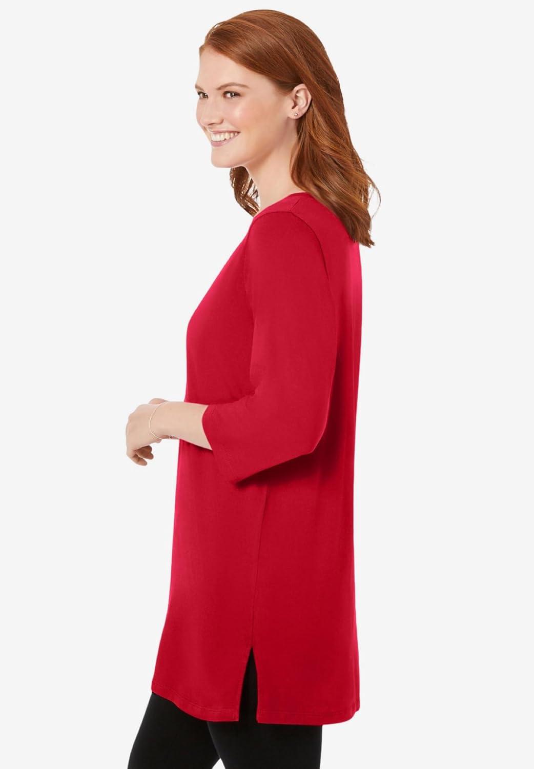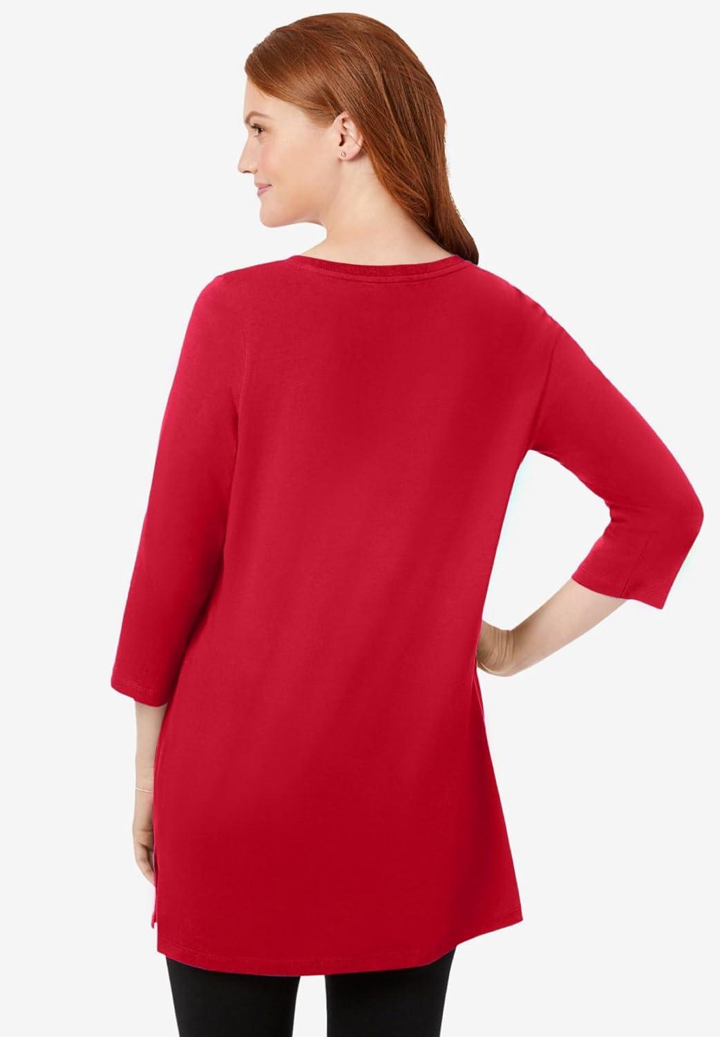 Woman Within Plus Size Perfect Three-Quarter-Sleeve Scoopneck Tunic(Classic Red)