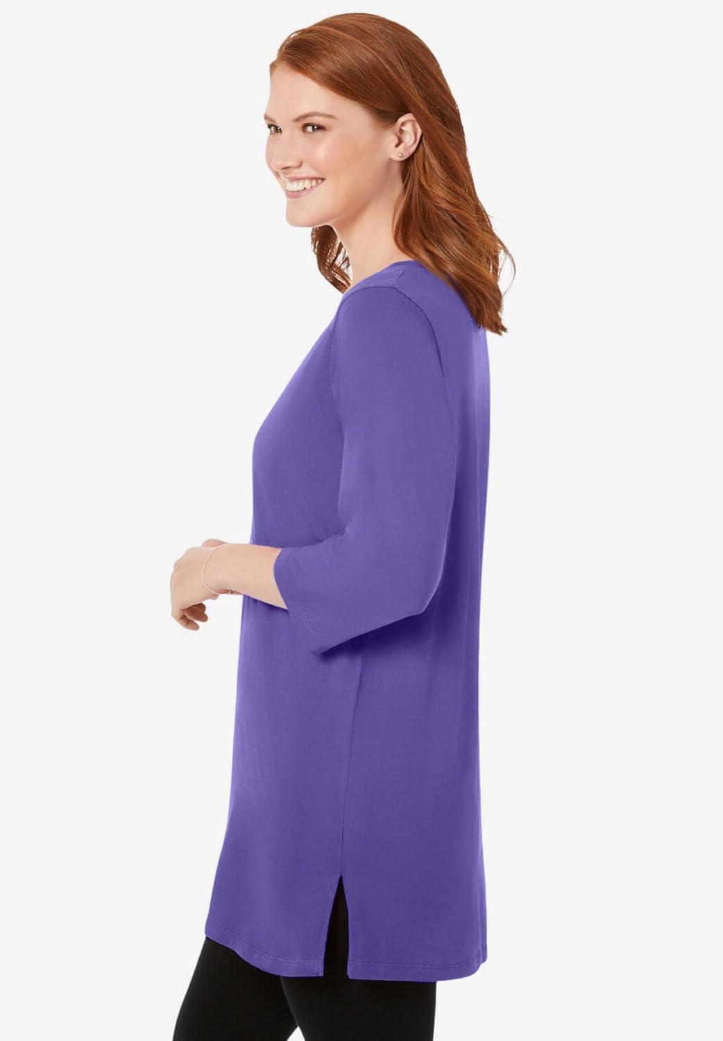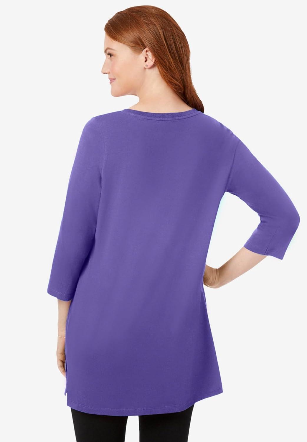 Woman Within Plus Size Perfect Three-Quarter-Sleeve Scoopneck Tunic(Petal Purple)