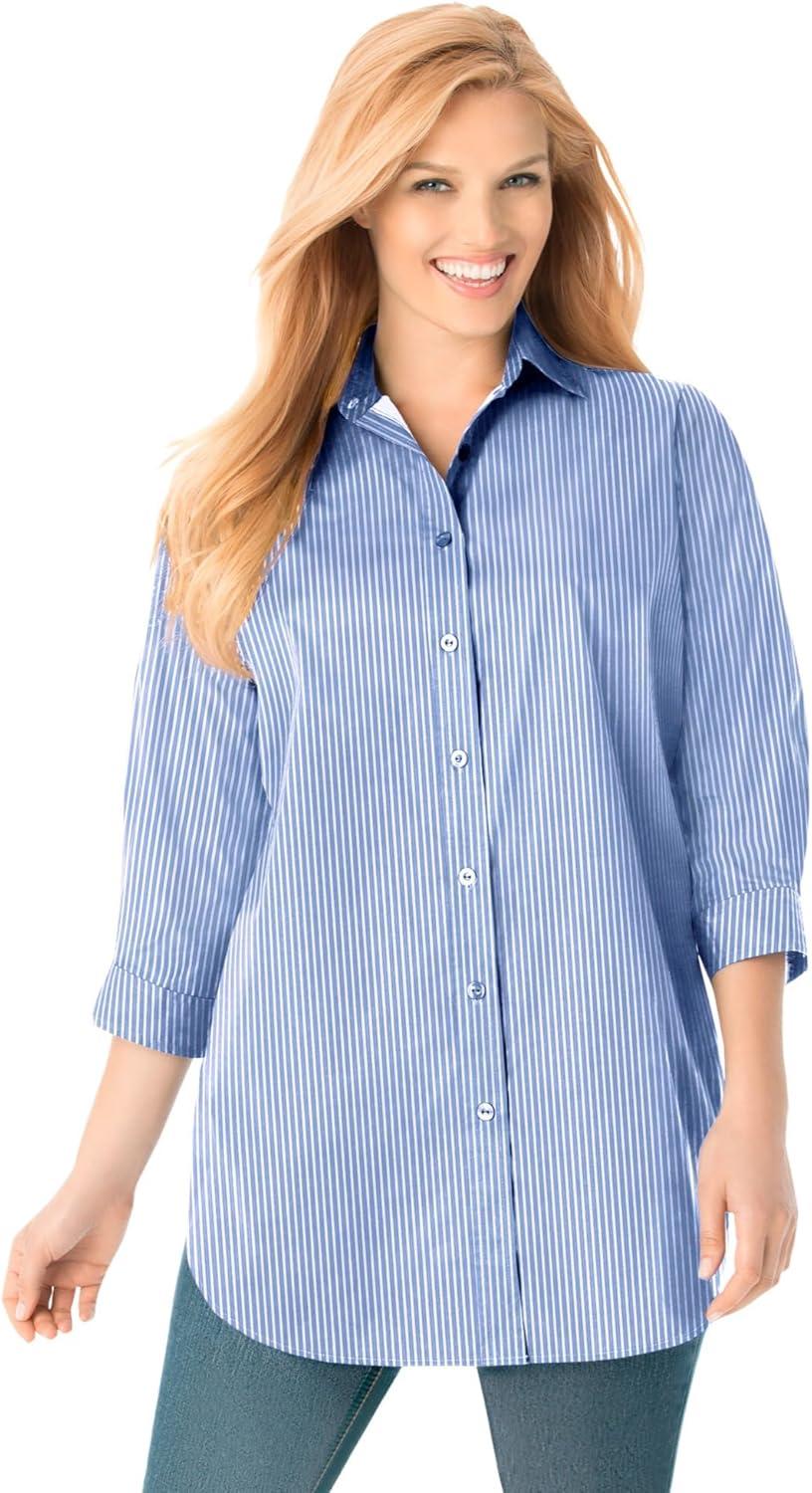 br>Experience ultimate comfort with our best-loved perfect shirt, designed with a three quarter sleeve, relaxed fit and classic tunic length for comfortable coverage. br> Enjoy easy maintenance with wrinkle-resistant and easy-care fabric. br> Stay polished with the stylish shirt collar and button-front design. br> Perfect for any occasion, thanks to the versatile 30″ tunic length. br> Crafted from a breathable cotton/poly blend, ensuring all-day comfort. br> Find your ideal fit with sizes ranging from M to 6X, embracing body positivity and inclusivity.