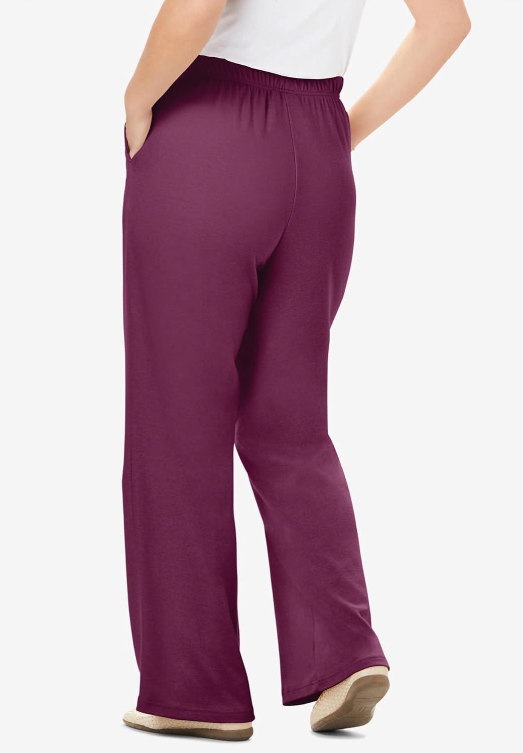 Woman Within Plus Size Petite 7-Day Knit Wide-Leg Pull-On Pants(Deep Claret)