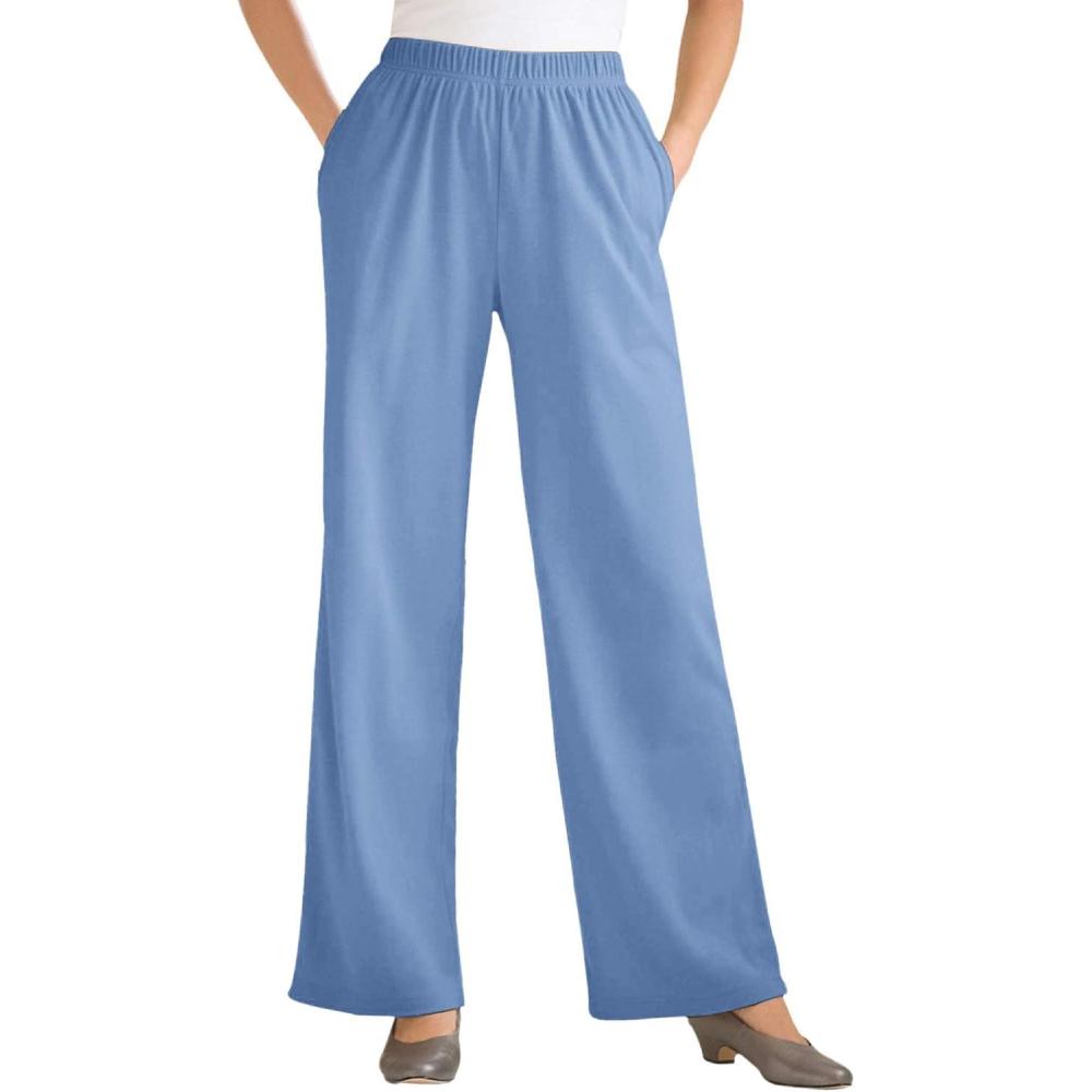 Woman Within Plus Size Petite 7-Day Knit Wide-Leg Pull-On Pants(French Blue)