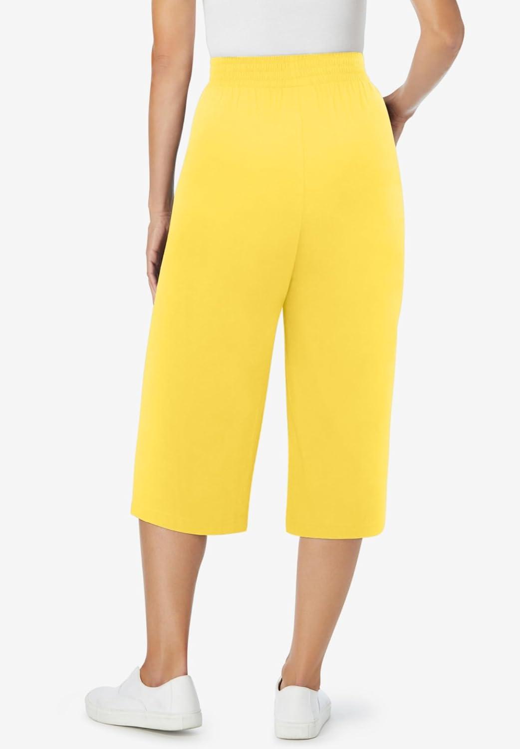Woman Within Plus Size Petite Elastic-Waist Pull-On Knit Pocket Capri Pants(Primrose Yellow)