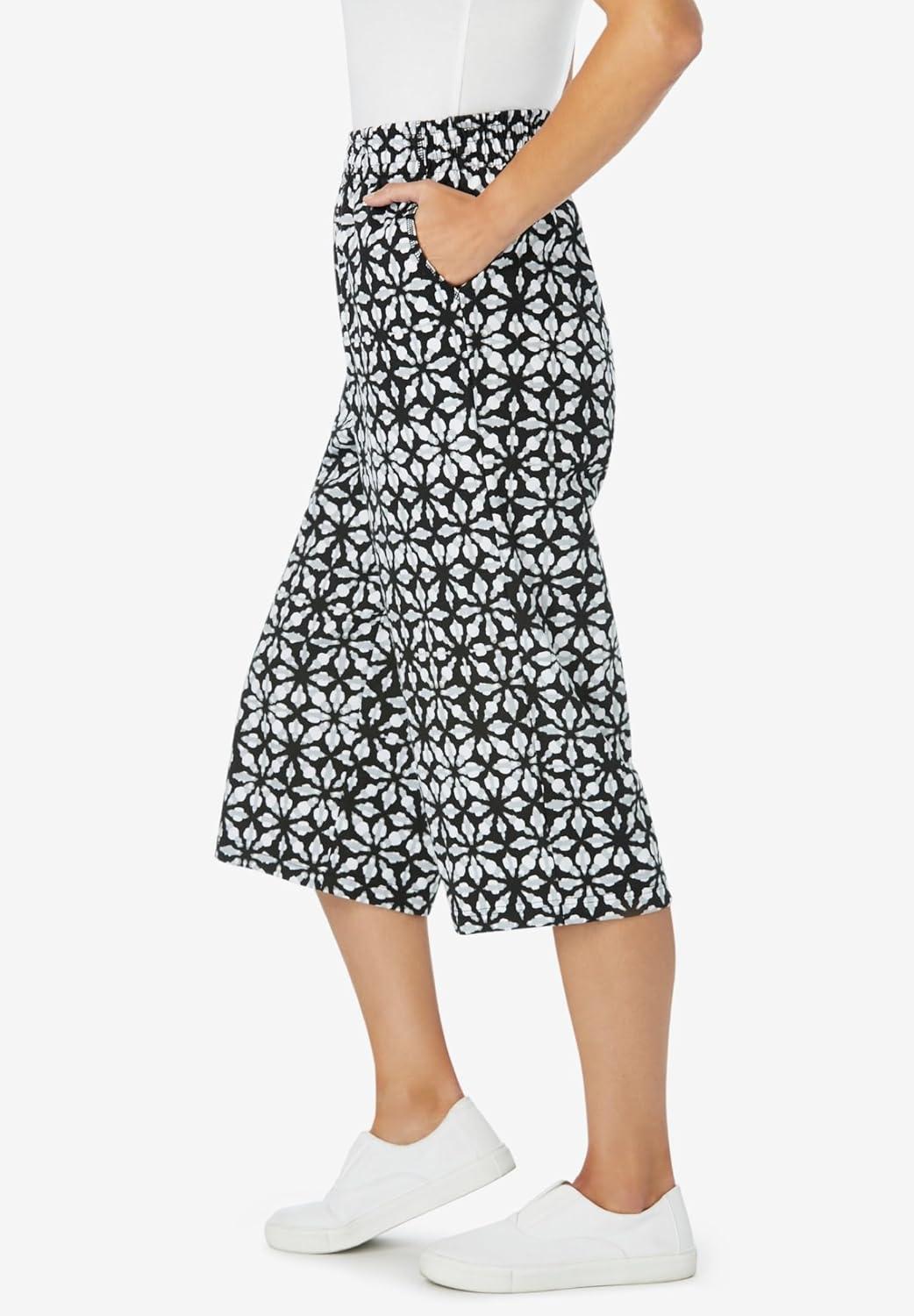 Woman Within Plus Size Petite Elastic-Waist Pull-On Knit Pocket Capri Pants(Purple Magenta)