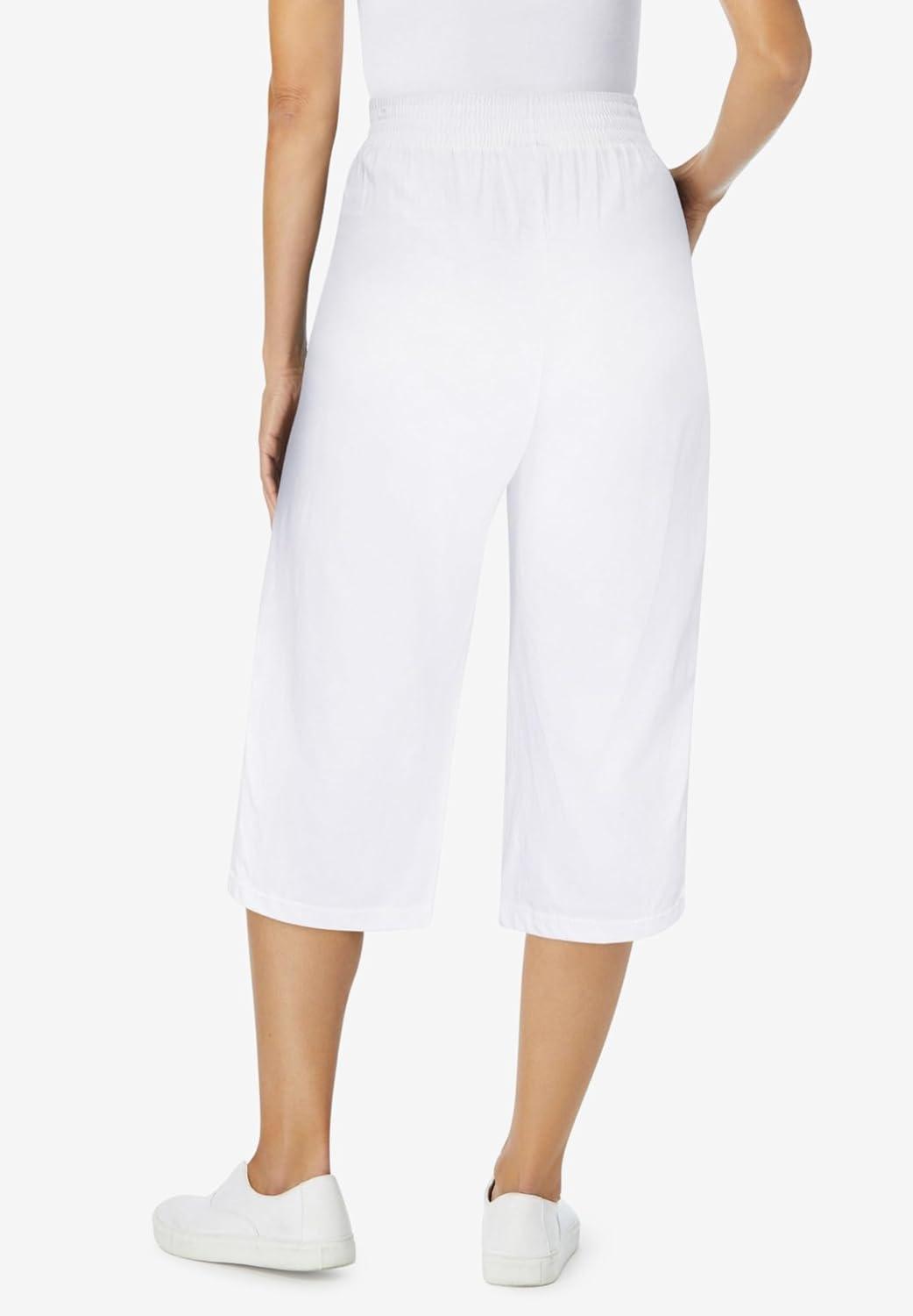 Woman Within Plus Size Petite Elastic-Waist Pull-On Knit Pocket Capri Pants(White)