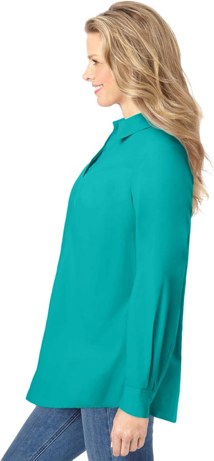 Woman Within Plus Size Petite Perfect Long Sleeve Shirt(Aquamarine)