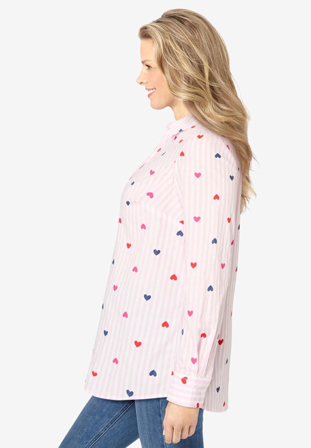 Woman Within Plus Size Petite Perfect Long Sleeve Shirt(Heart Stripe Multi)