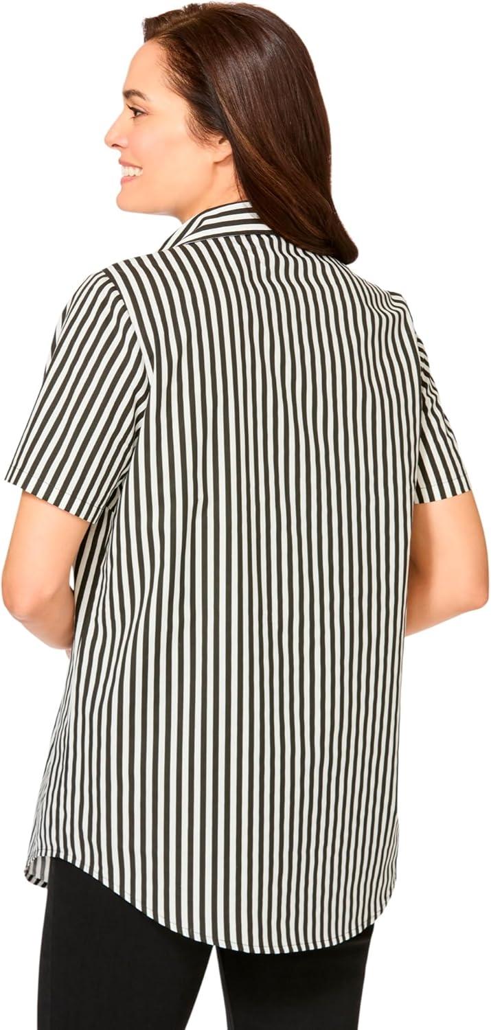 Woman Within Plus Size Petite Perfect Short Sleeve Shirt(Black Stripe)