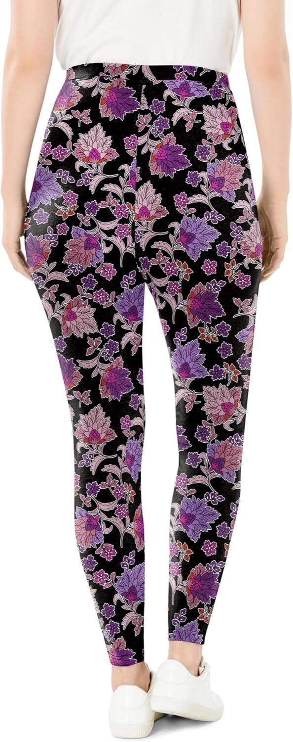 Woman Within Plus Size Petite Stretch Cotton Cozy Legging(Black Violet Lace)