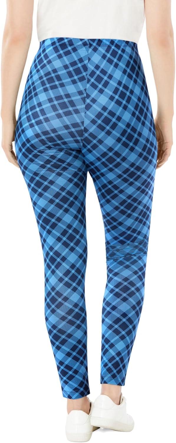 Woman Within Plus Size Petite Stretch Cotton Cozy Legging(Blue Coast Bias Plaid)