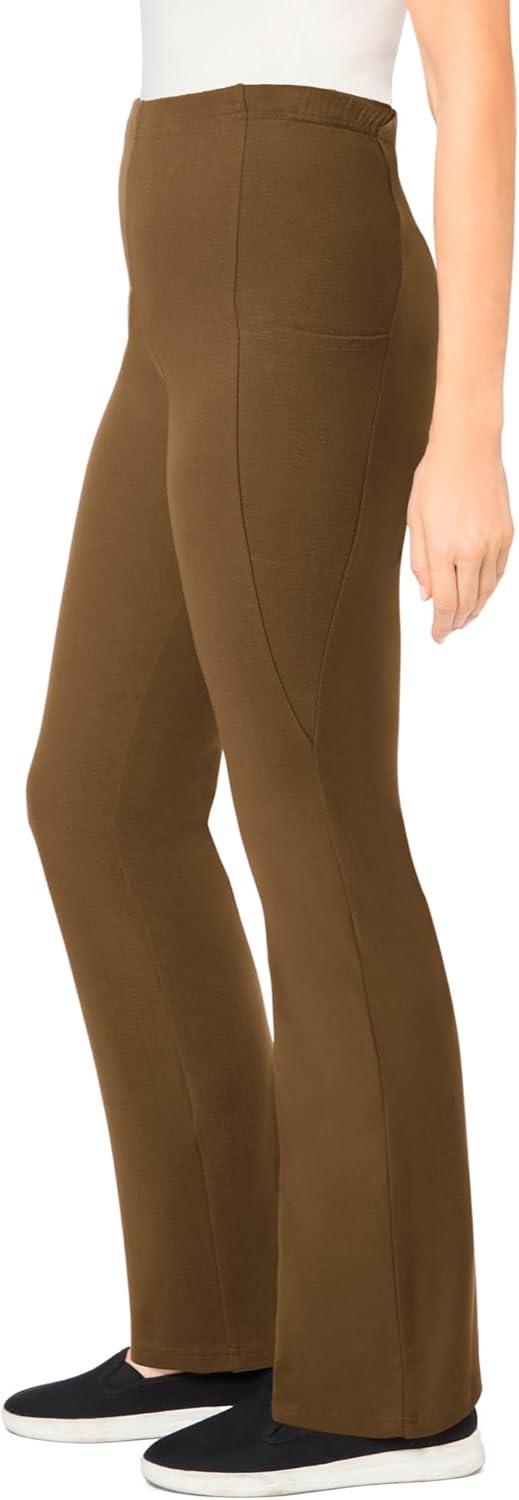 Woman Within Plus Size Petite Stretch-Cotton Knit Pull-On Bootcut Pocket Leggings(Toffee)