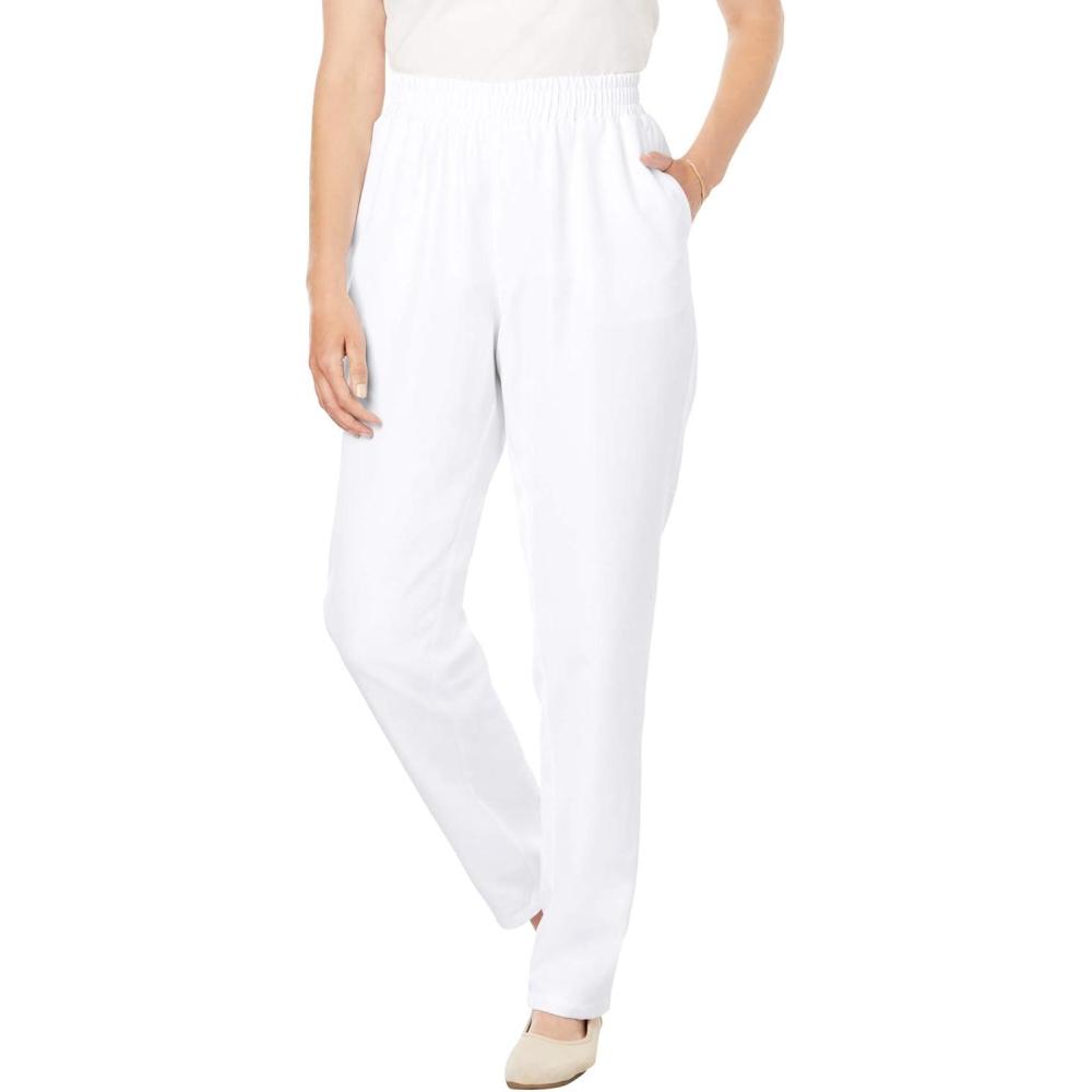 Woman Within Plus Size Petite Woven Pull-On Pants(White)