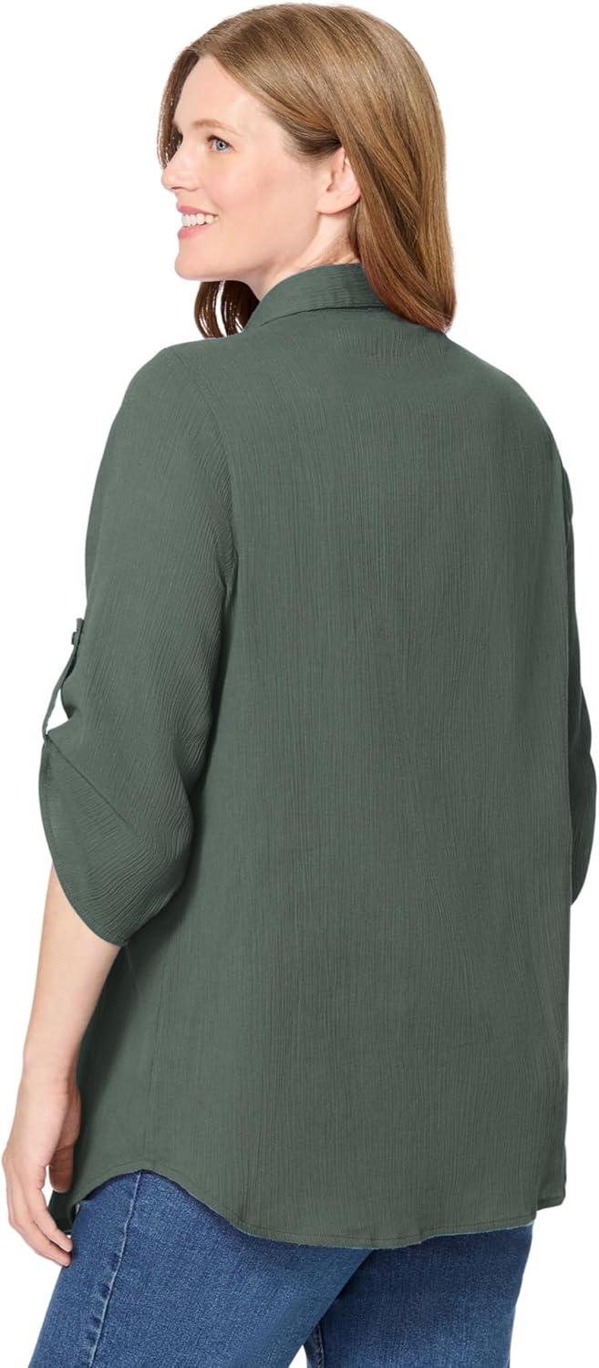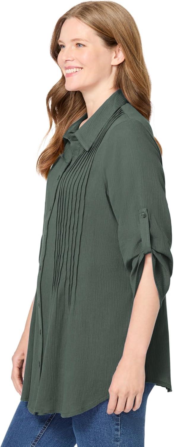 Woman Within Plus Size Pintucked Button Down Gauze Shirt(Pine)