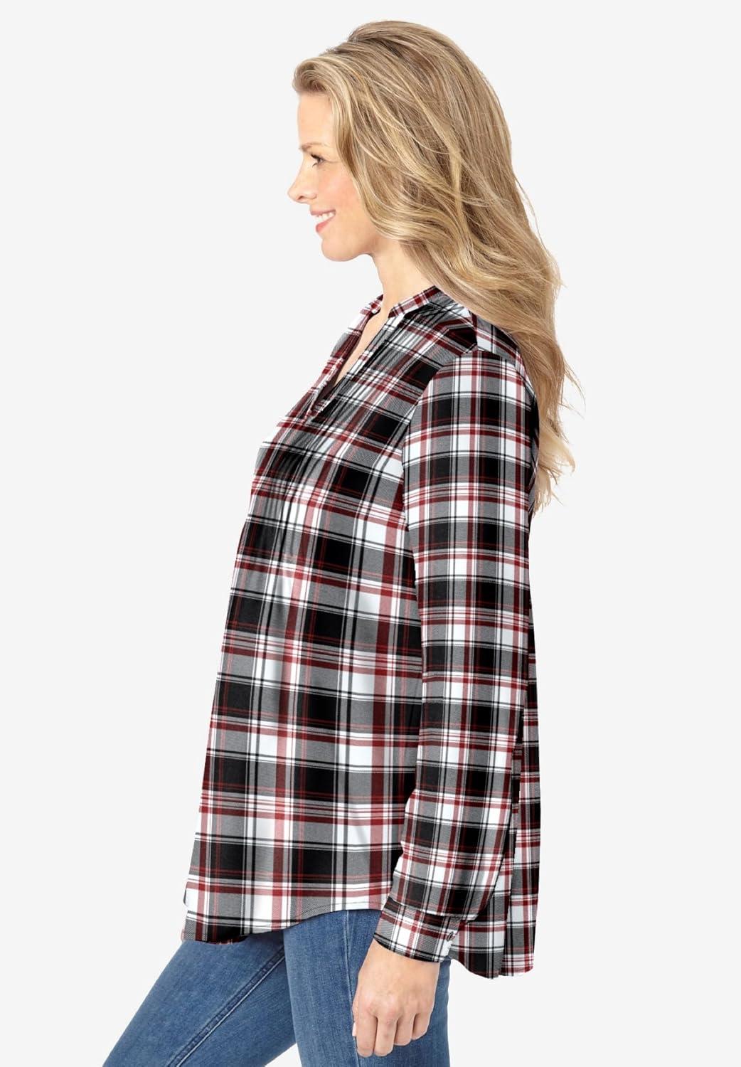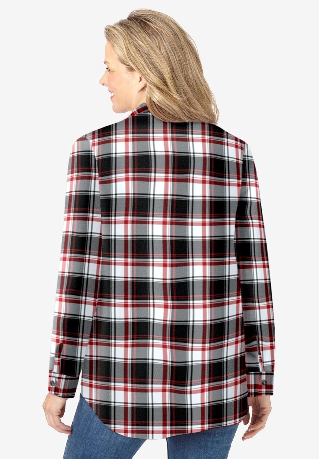 Woman Within Plus Size Pintucked Flannel Shirt(Black Red Plaid)