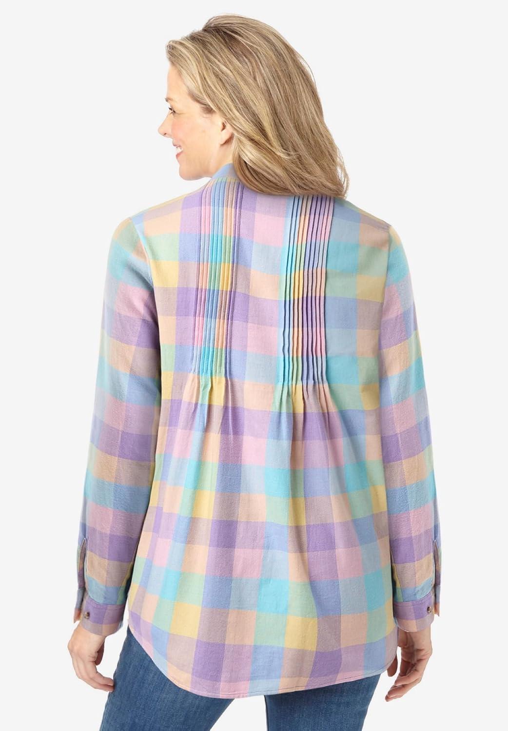 Woman Within Plus Size Pintucked Flannel Shirt(Multi Pastel Plaid)