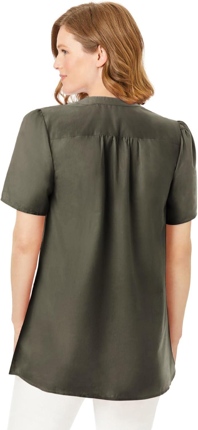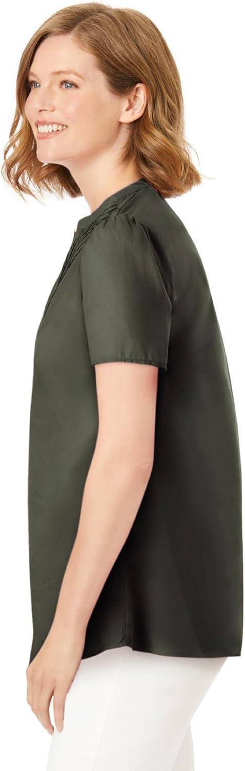 Woman Within Plus Size Pintucked Half-Button Tunic(Olive Green)
