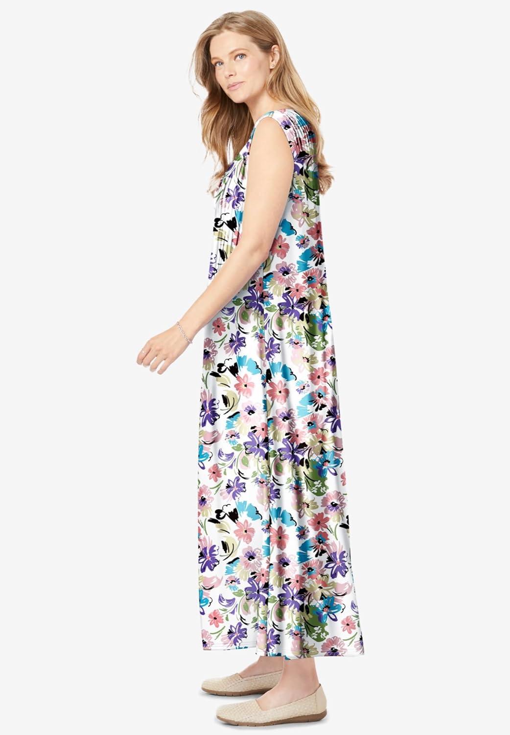 Woman Within Plus Size Pintucked Sleeveless Dress(White Poppy Blossom)