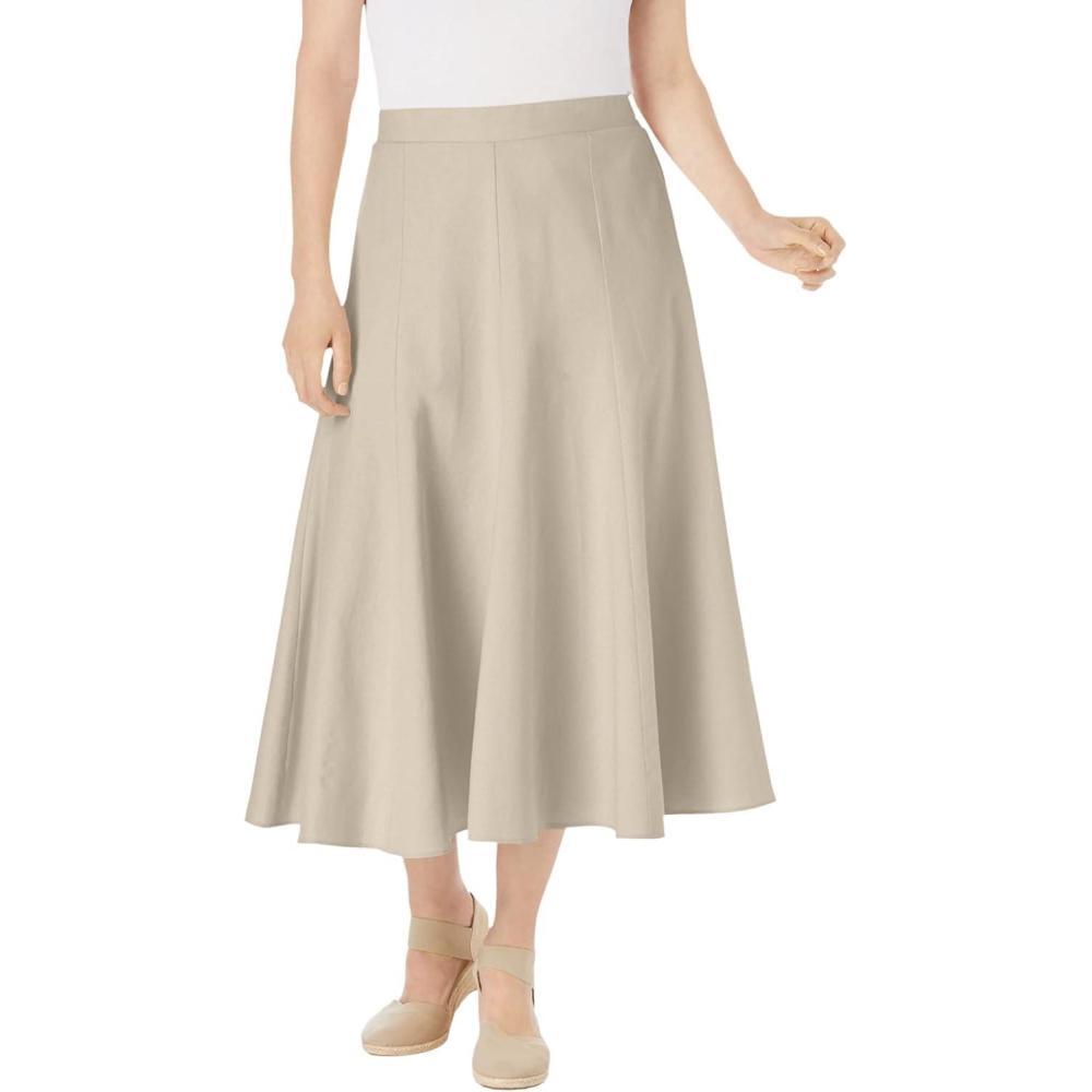 Woman Within Plus Size Print Linen-Blend Midi Skirt (Petite Available)(Natural Khaki)
