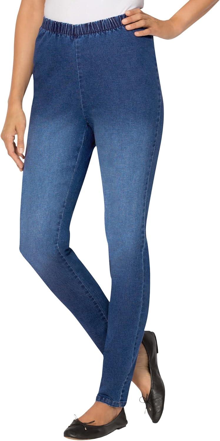 Woman Within Plus Size Pull-On Elastic-Waist Stretch Fineline Denim Jeans(Stonewash Sanded)