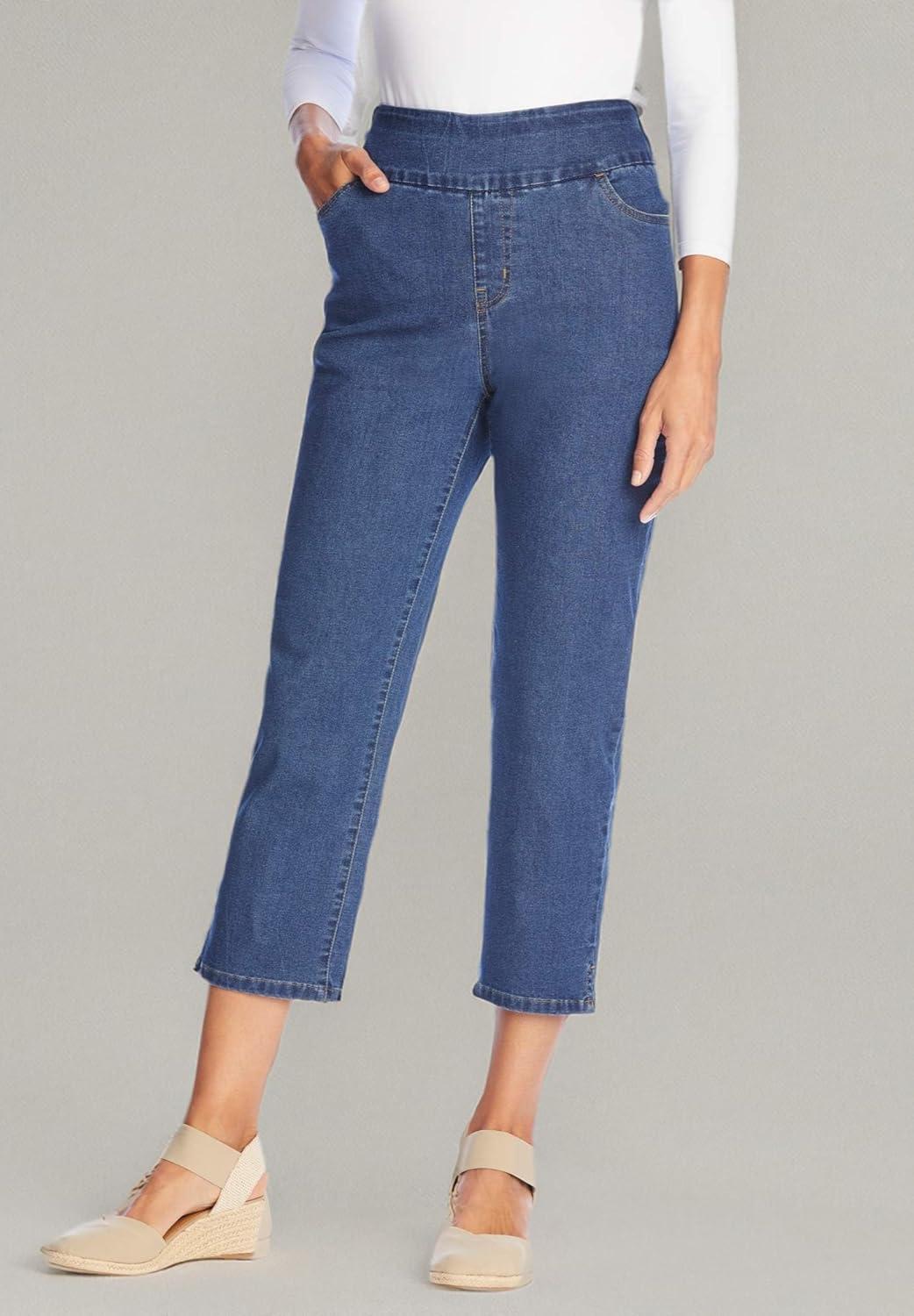 Woman Within Plus Size Pull-On Flex Elastic-Waist Stretch Denim Capri Jeans(Medium Stonewash)