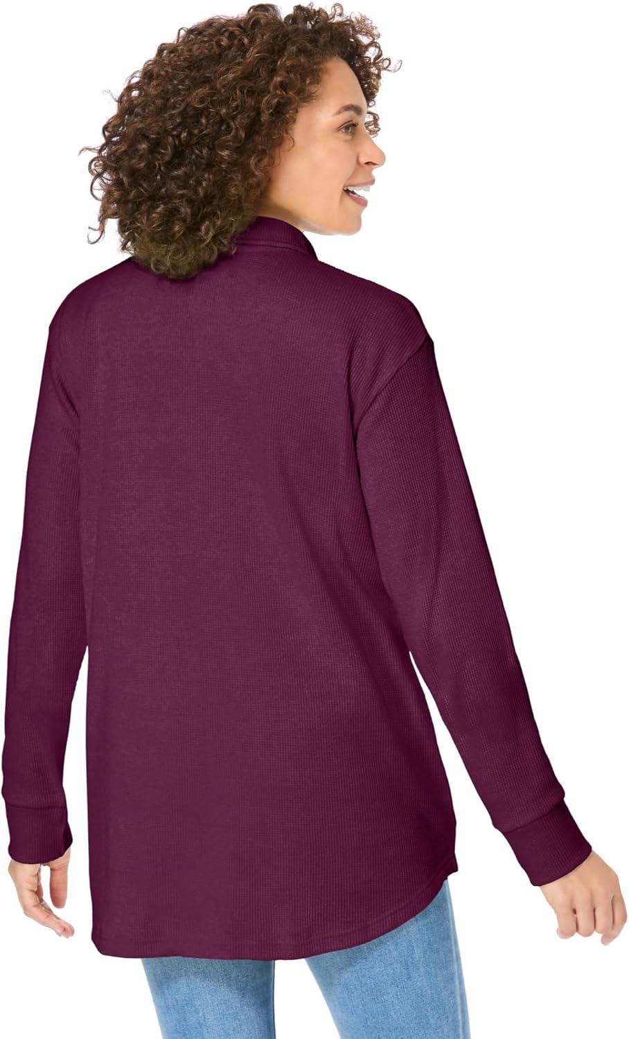 Woman Within Plus Size Relaxed Waffle-Thermal Tunic(Deep Claret)