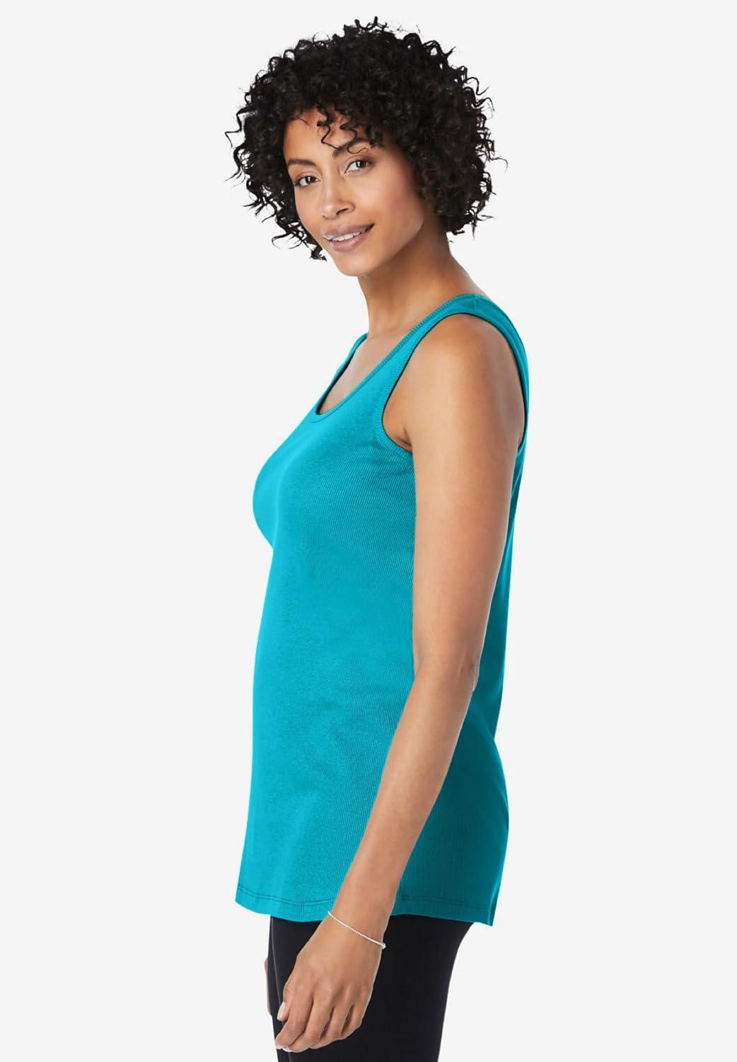 Woman Within Plus Size Rib Knit Tank(Pretty Turquoise)