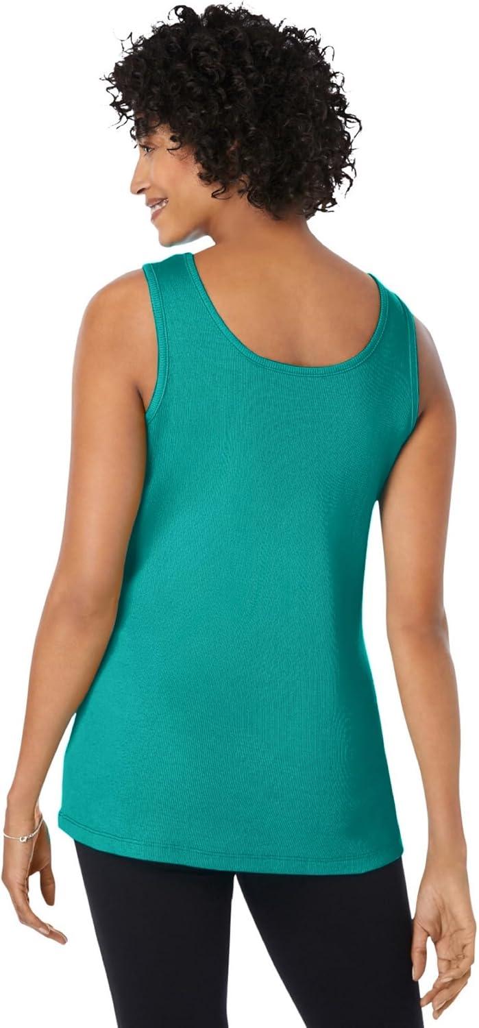 Woman Within Plus Size Rib Knit Tank(Waterfall)