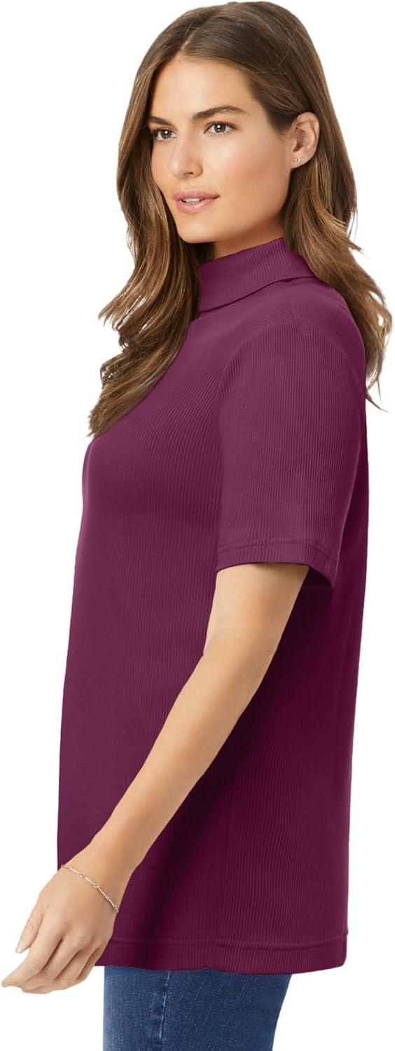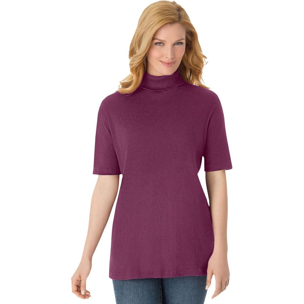 Woman Within Plus Size Ribbed Short Sleeve Turtleneck(Deep Claret)
