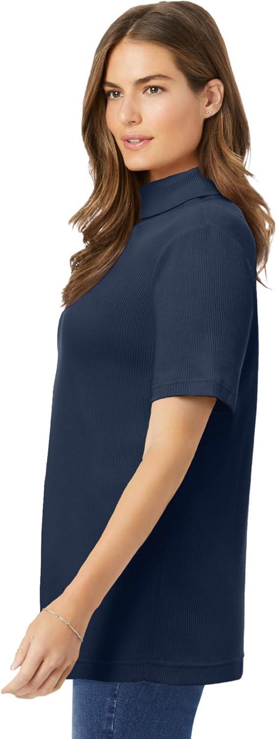Woman Within Plus Size Ribbed Short Sleeve Turtleneck(Navy)