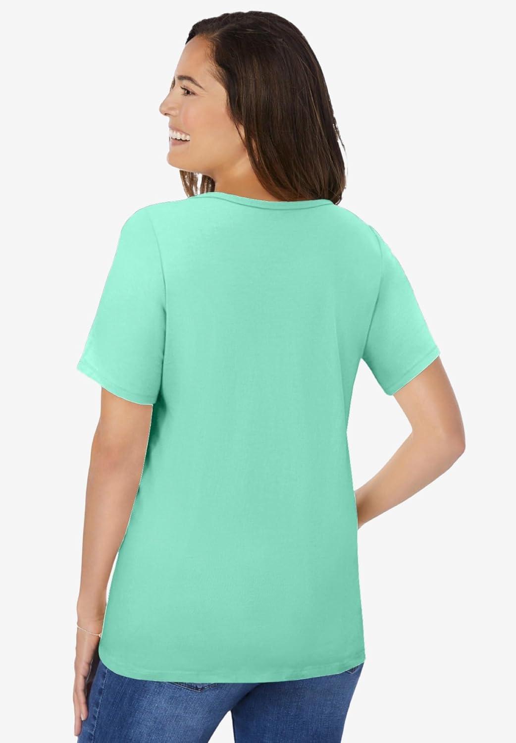 Woman Within Plus Size Ruffle Tee(Pale Seafoam)