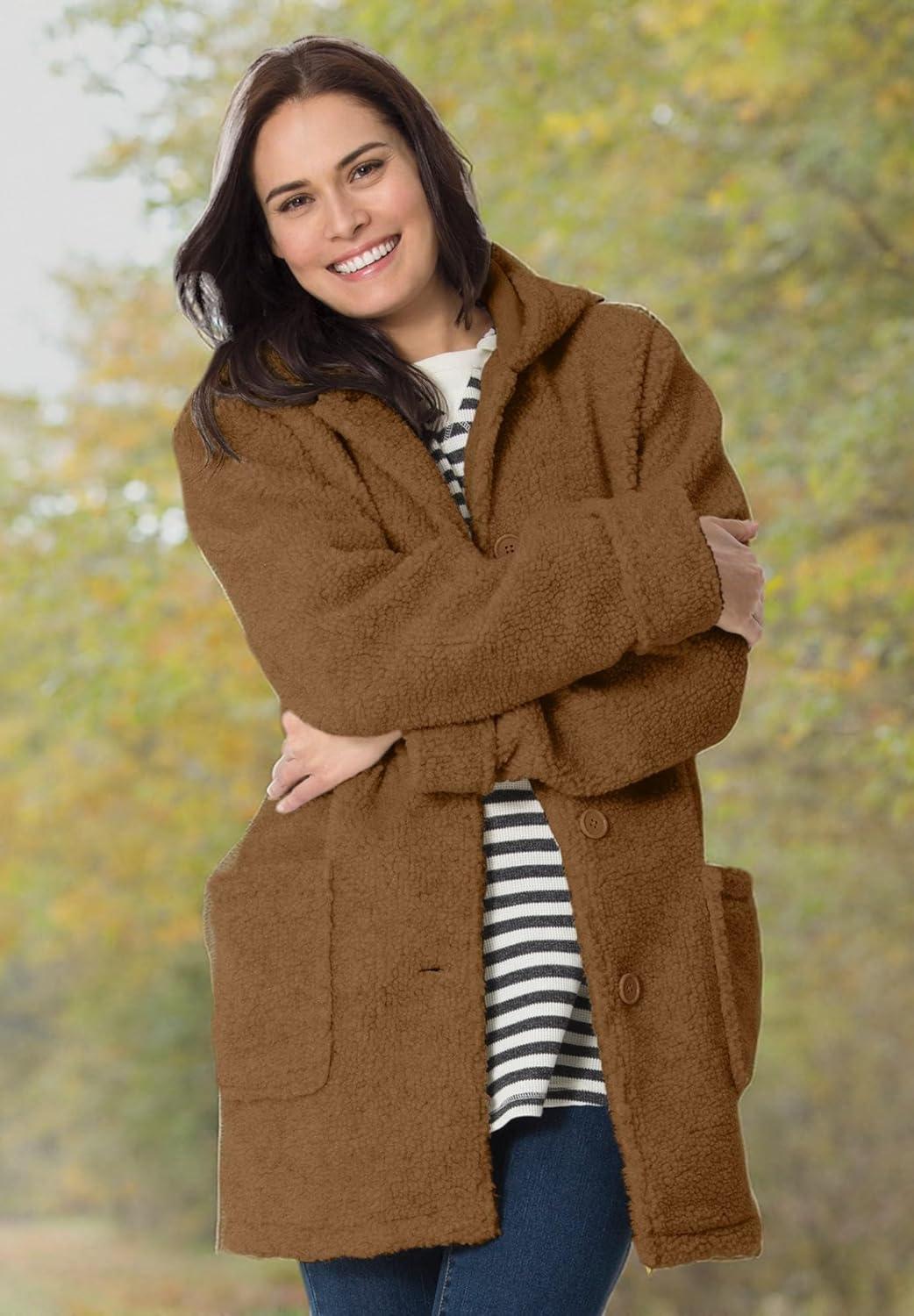Woman Within Plus Size Short Hooded Berber Fleece Jacket(Toffee)