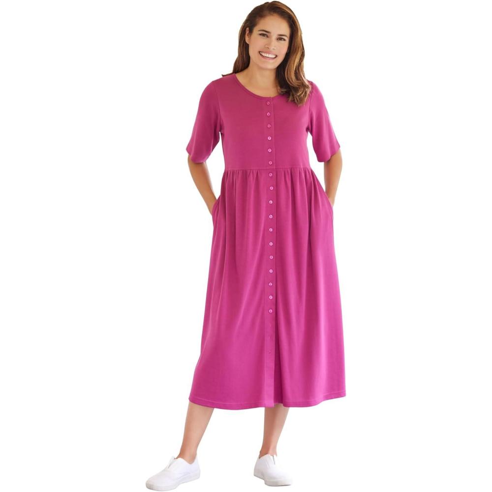 Woman Within Plus Size Short-Sleeve Button-Front Pocket Dress (Petite Available) – 7X, Raspberry