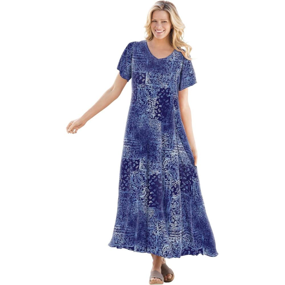 Woman Within Plus Size Short-Sleeve Crinkle Dress(Navy Patchwork)