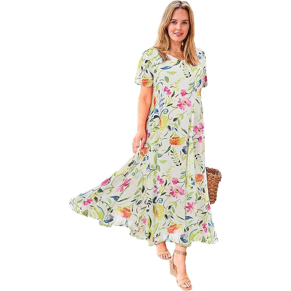 Woman Within Plus Size Short-Sleeve Crinkle Dress(White Multi Watercolor)