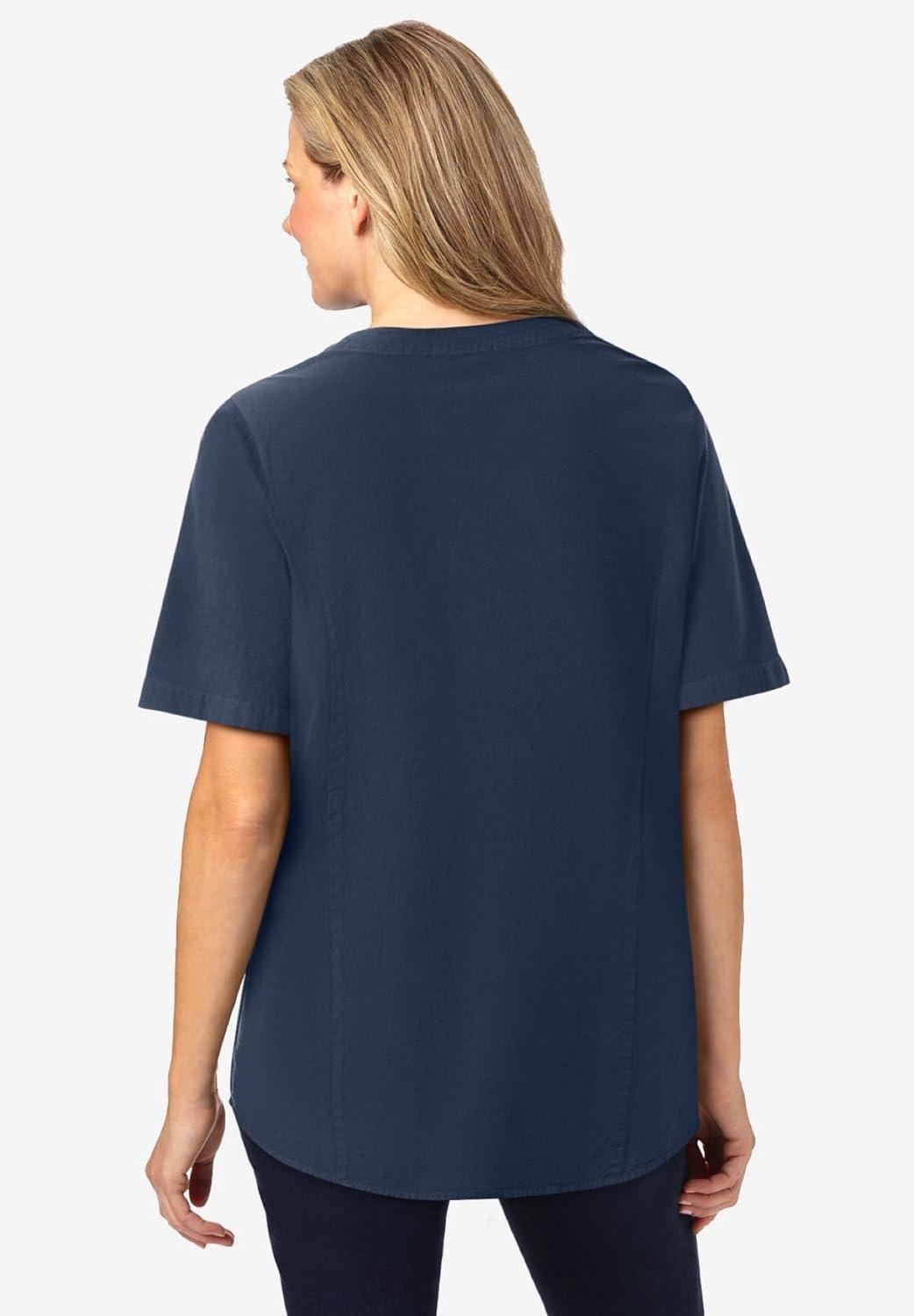 Woman Within Plus Size Short-Sleeve Crinkle Shirt(Navy)