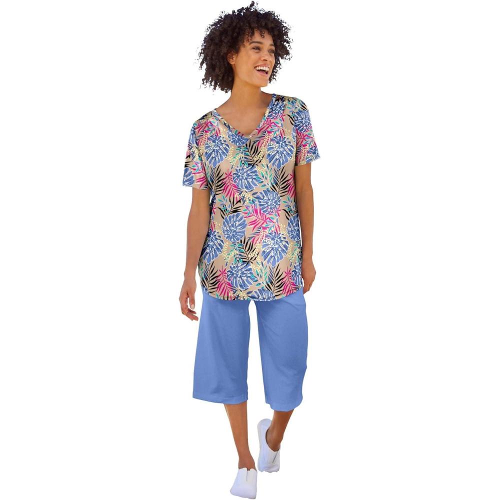 Woman Within Plus Size Short-Sleeve V-Neck Shirred Tee(New Khaki Rainforest)