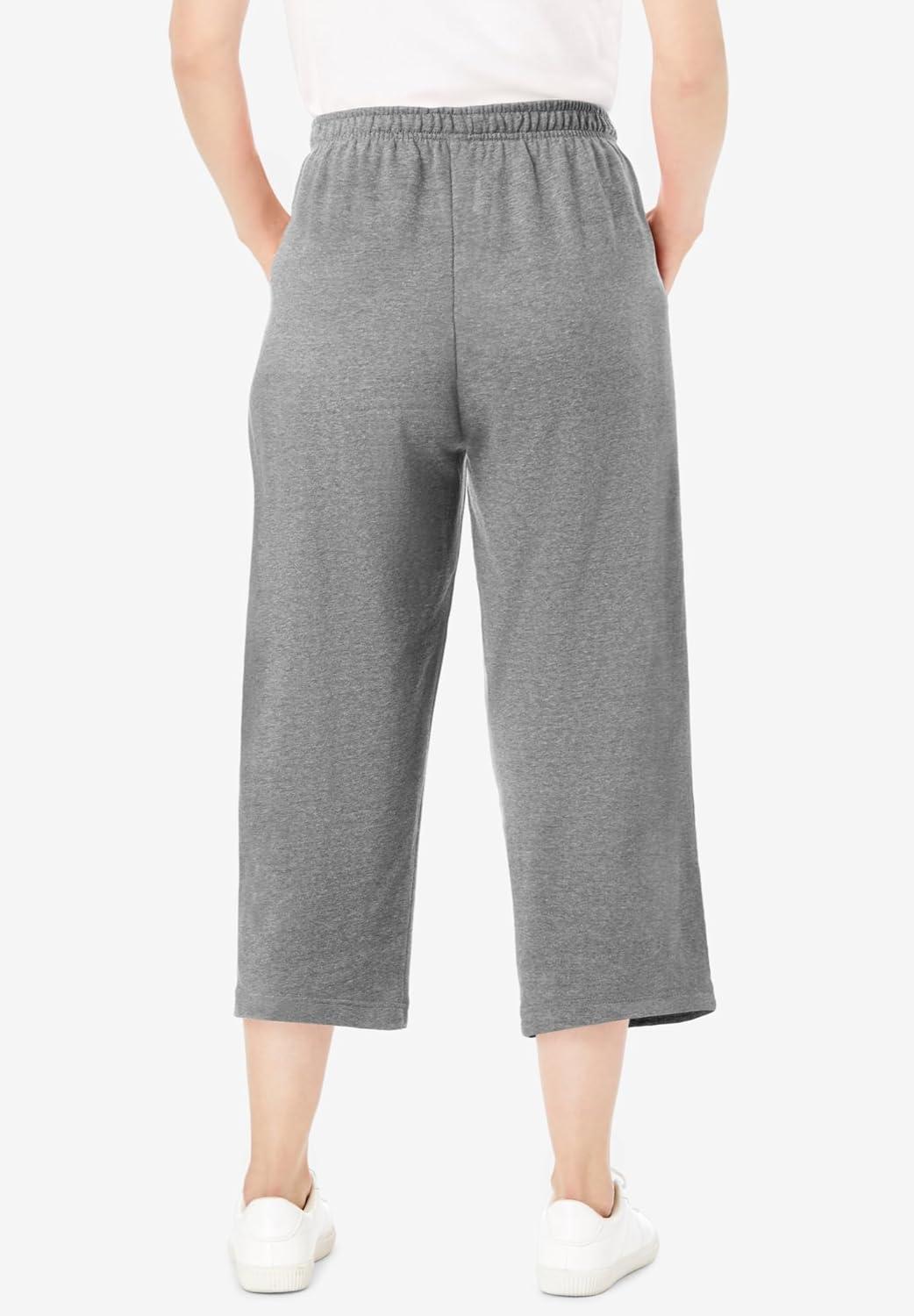 Woman Within Plus Size Side-Stripe Cotton French Terry Capri(Medium Heather Grey Sweet Coral)