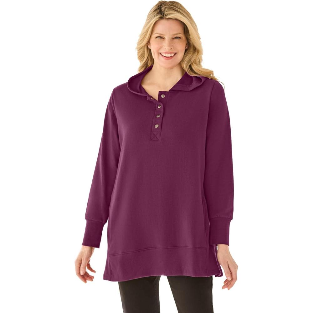 Woman Within Plus Size Snap Hoodie Pocket Sweatshirt(Deep Claret)