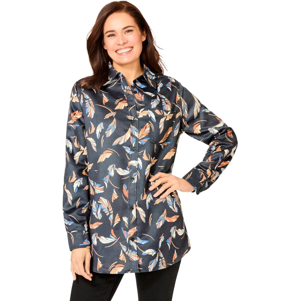 Woman Within Plus Size Soft Faux Suede Shirt(Black Feathers)