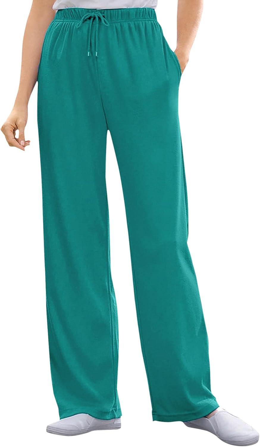 Woman Within Plus Size Sport Knit Straight-Leg Pull-On Pants(Waterfall)