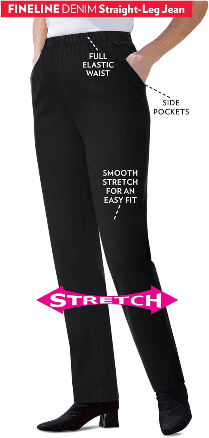 Woman Within Plus Size Straight Leg Elastic Waist Stretch Fineline Denim Jean (Petite & Tall Available)(Black)