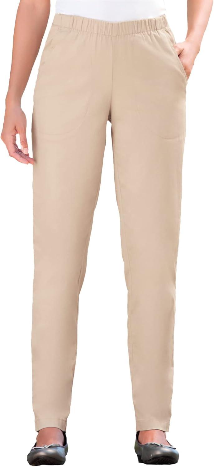 These jeans are fashioned with stretch to give you the perfect fit. Their all-around covered elastic waistband makes them even more comfortable. This pull-on style features slant pockets on the front and a pocketless back for a smooth look. These straight-leg jeans fit over your favorite shoe to provide a sleek silhouette. Full covered elastic pull-on waistband. br> Features a flat front pocket and no back pockets for a clean, streamlined look. br> Designed with a straight leg silhouette for timeless style. br> Experience all-day comfort with a slight stretch in the fabric. br> Sit comfortably at the waist, perfect for daily wear. br> Available inseams: Average 29″, Petite 27″, Tall 33″. br> Blend of cotton/poly/spandex for durability and flexibility. br> Easy care – machine washable for convenience. br> Choose from a variety of stylish colors and twill finishes. br> Imported