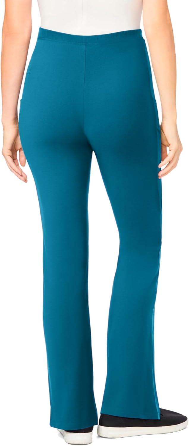 The perfect stretch fit bootcut leggings with convenient side pockets for essentials. Whether at home or on the go, pull-on stretch pocket knits move and flex for all-day comfort. Pair with your favorite tunic for a stylish, comfortable silhouette. The full covered-elastic waistband ensures all-day comfort and a fit that feels made for you. Sit comfortably above the waist for a flattering fit br> Side hem slit br> Average: 30” inseam br> Petite: 28″ inseam br> Tall: 33″ inseam br> Solids: cotton/spandex br> Heathers: cotton/poly/spandex br> Machine wash br> Imported